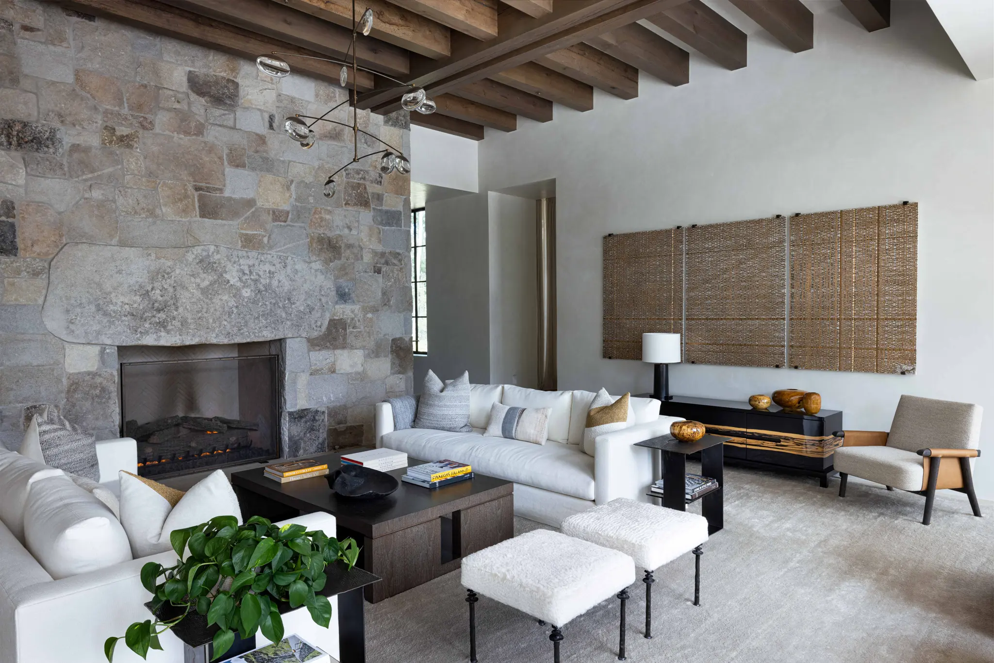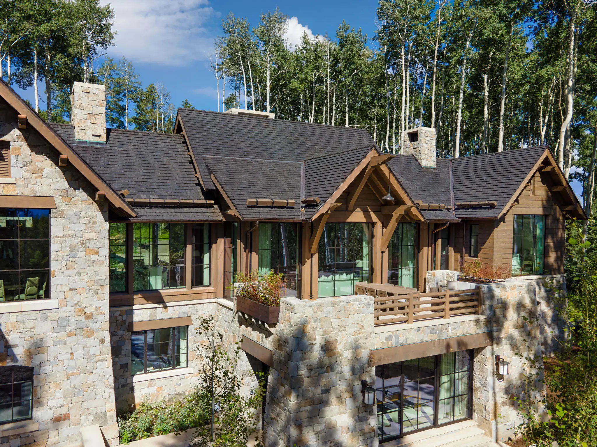 This alpine residential project features extensive custom stone and masonry work integrated within a refined mountain retreat set among an aspen grove. The stone scope includes carefully curated granite selections sourced from multiple regions, including gray granite from the Canadian border, salt-and-pepper granite from Virginia, and custom Selkirk granite from Montana. These materials are applied throughout both interior and exterior environments, contributing texture, permanence, and a grounded architectural presence.